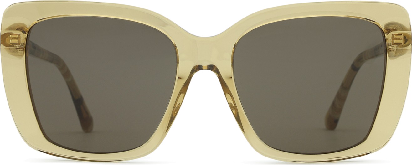 • Il colore beige della montatura si abbina perfettamente a un sottotono di pelle caldo e capelli castano chiaro.