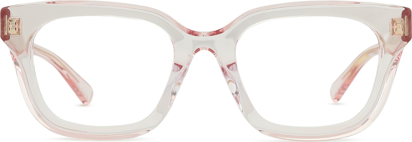 Il colore rosa della montatura si abbina perfettamente a un sottotono di pelle