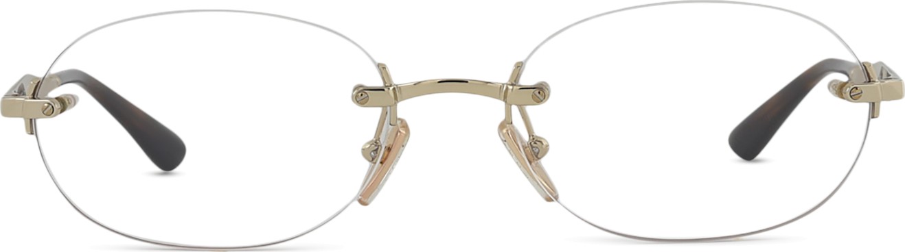 - Il colore dorato della montatura si abbina perfettamente a un sottotono di pelle caldo e capelli castano scuro.